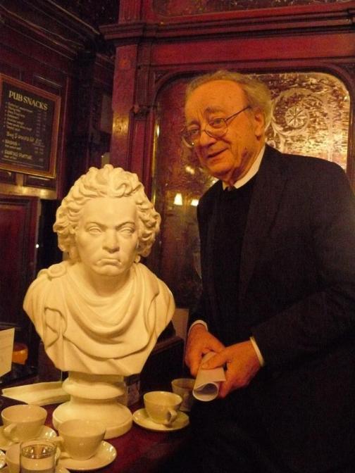 The RPS published this photo from the Argyll Arms on Facebook, and my immediate and predictable response was to provide a corny caption (others followed suit). At one point, The Guardian was going to publish both photo and caption but had second thoughts, opting instead for the punchy “Alfred Brendel poses with the Royal Philharmonic Society’s bust of Beethoven. Only one of them looks pleased about this”.